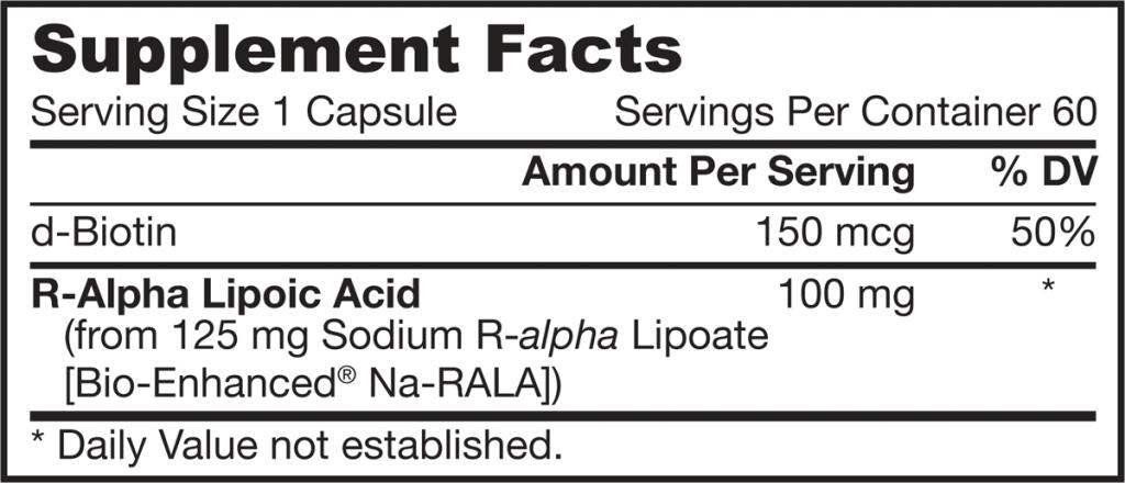 Further, R-ALA is known to stimulate healthy glucose metabolism.* In clinical studies, supplementation supported blood glucose levels, insulin activity and insulin sensitivity without reported side effects. This efficient glucose metabolism seems to contribute to healthy lipid metabolism as well.*